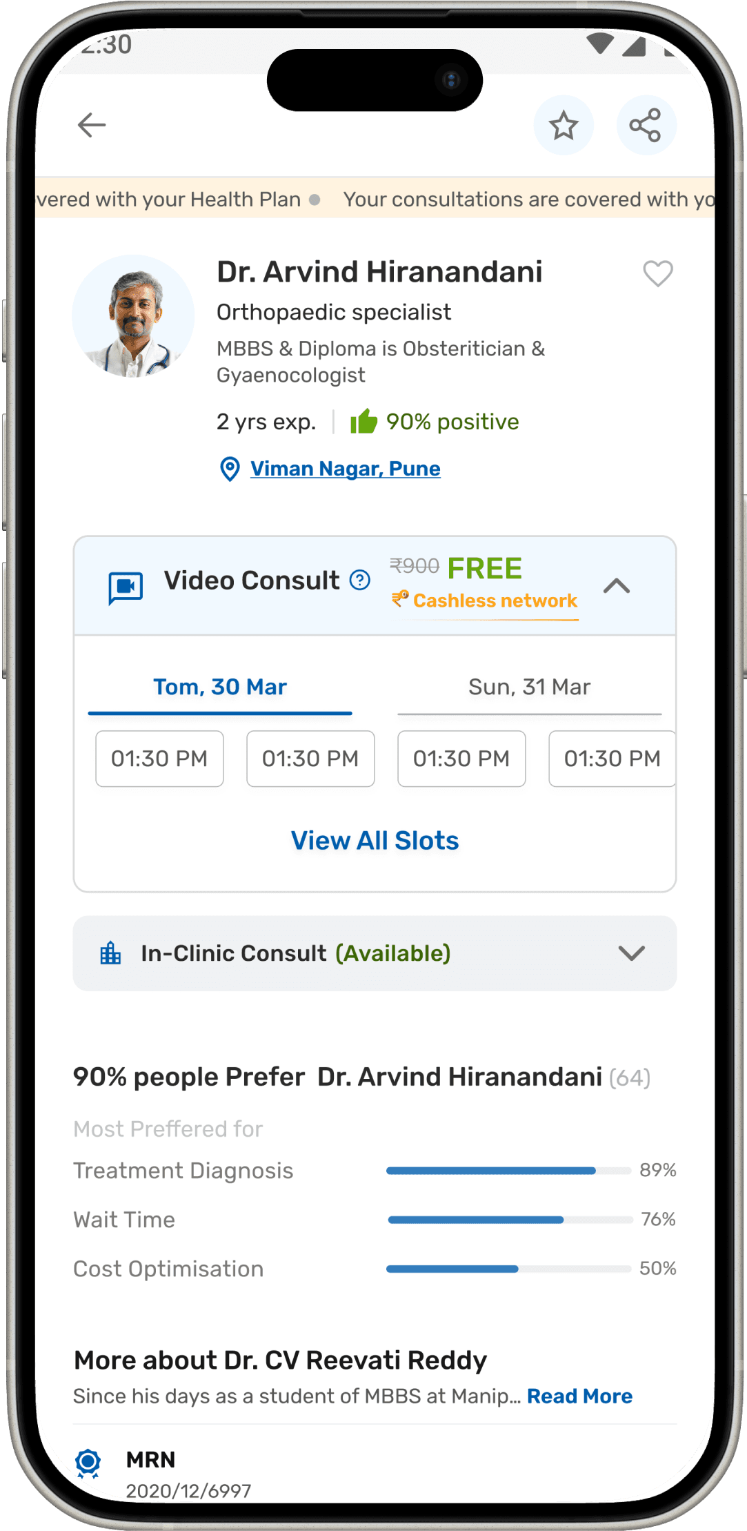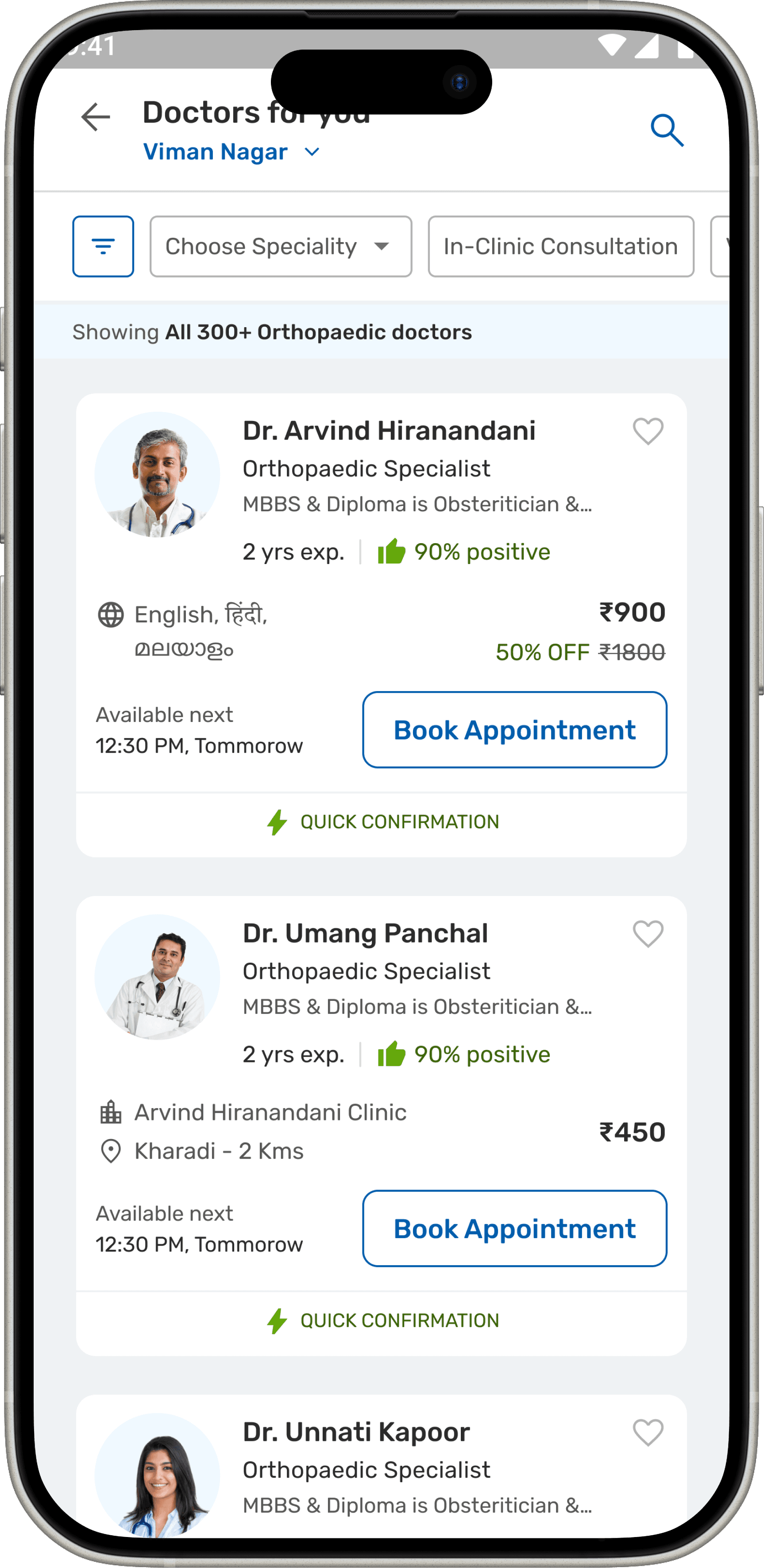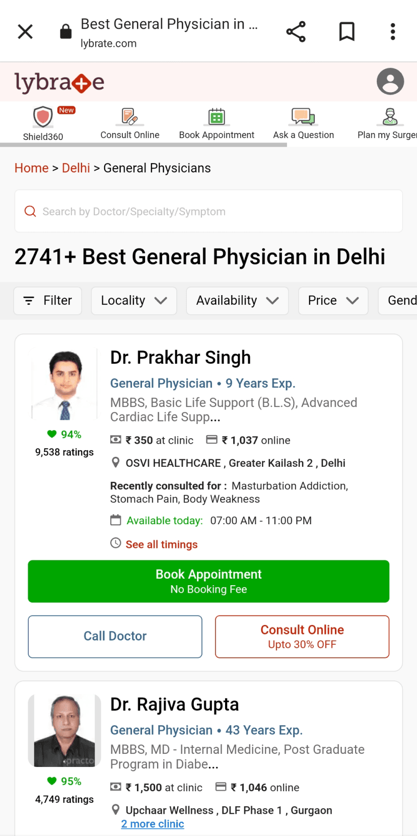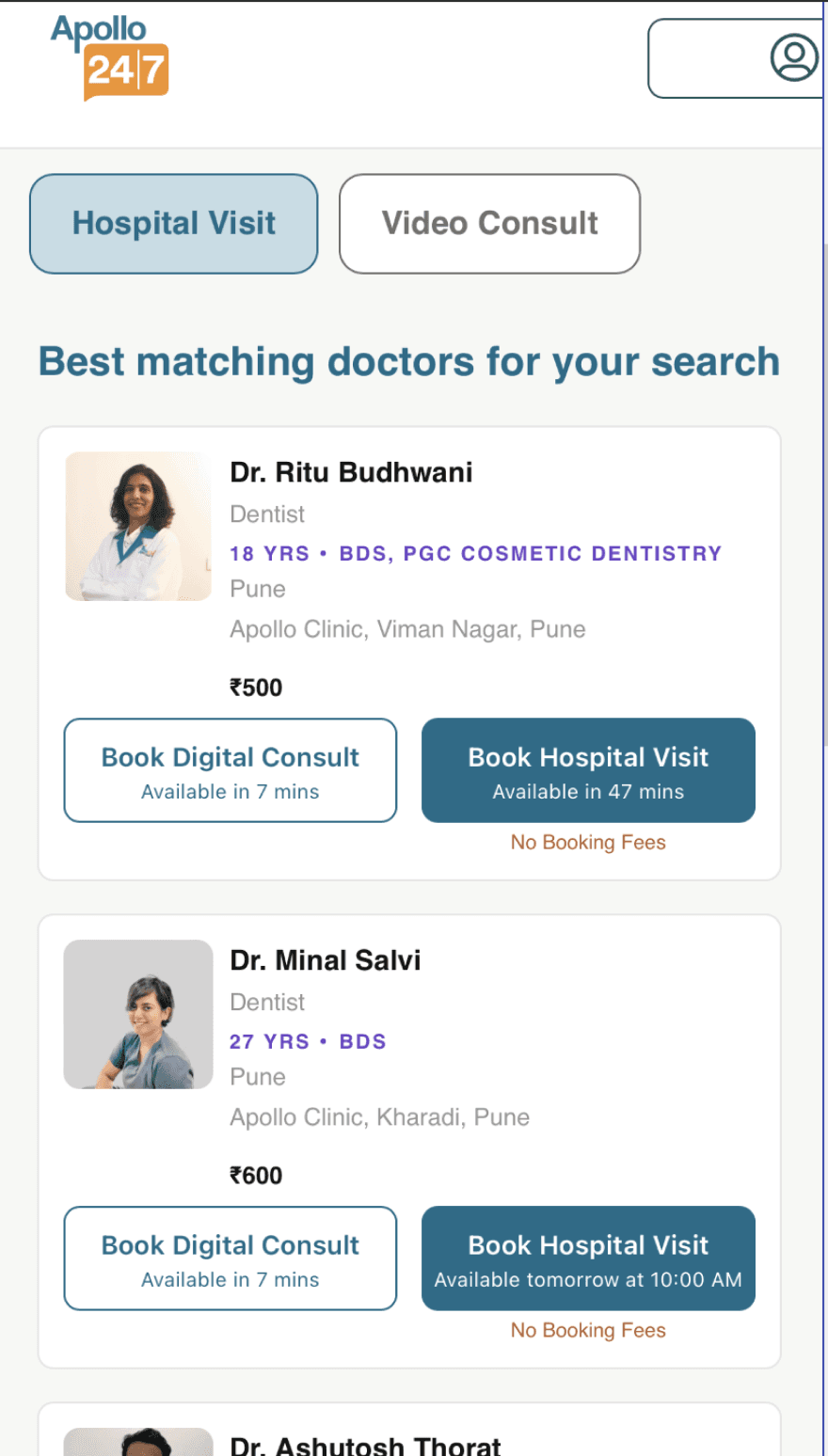 The doctor details are there in a card format which makes the decision factor for a patient for consultation.