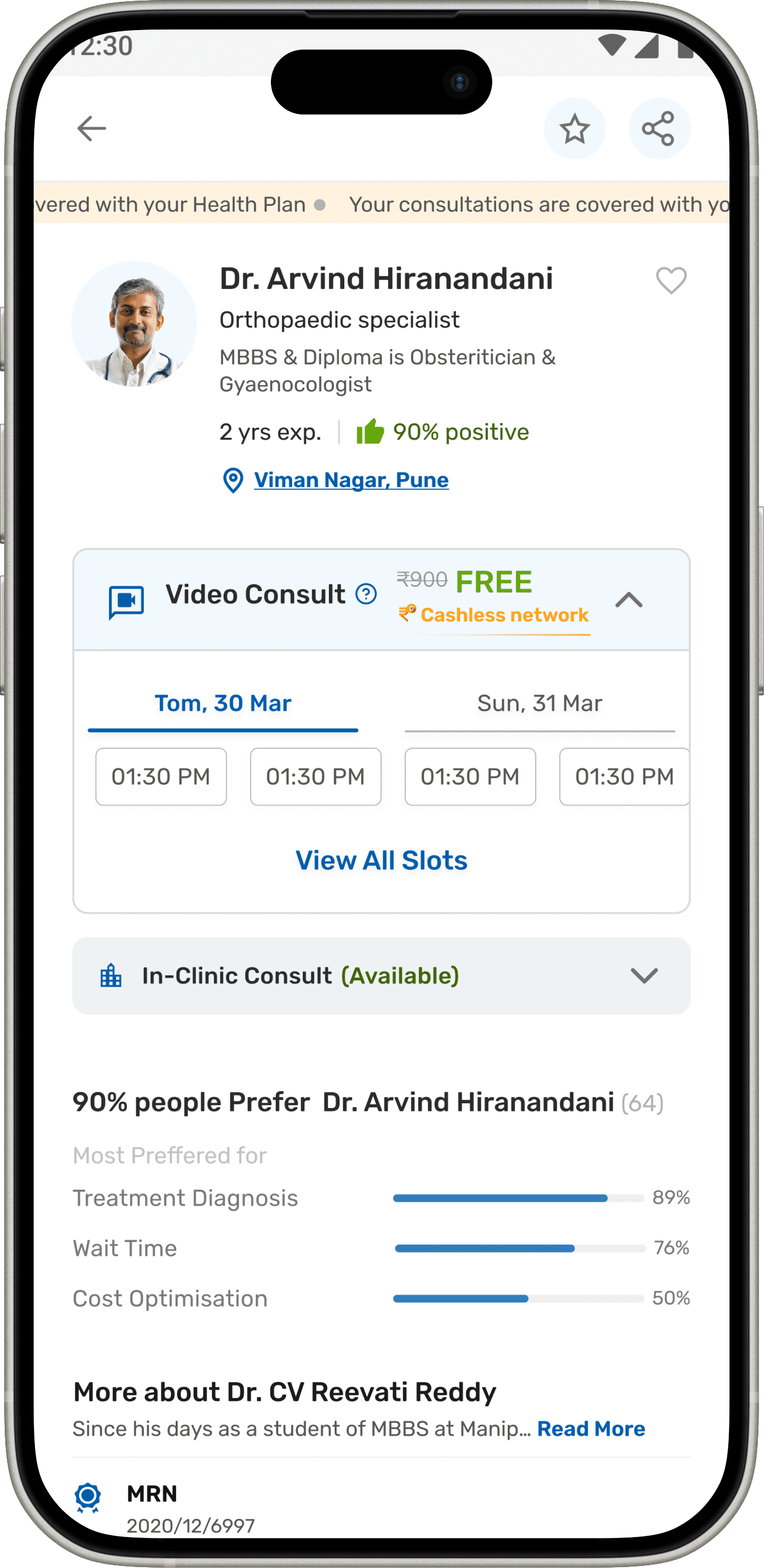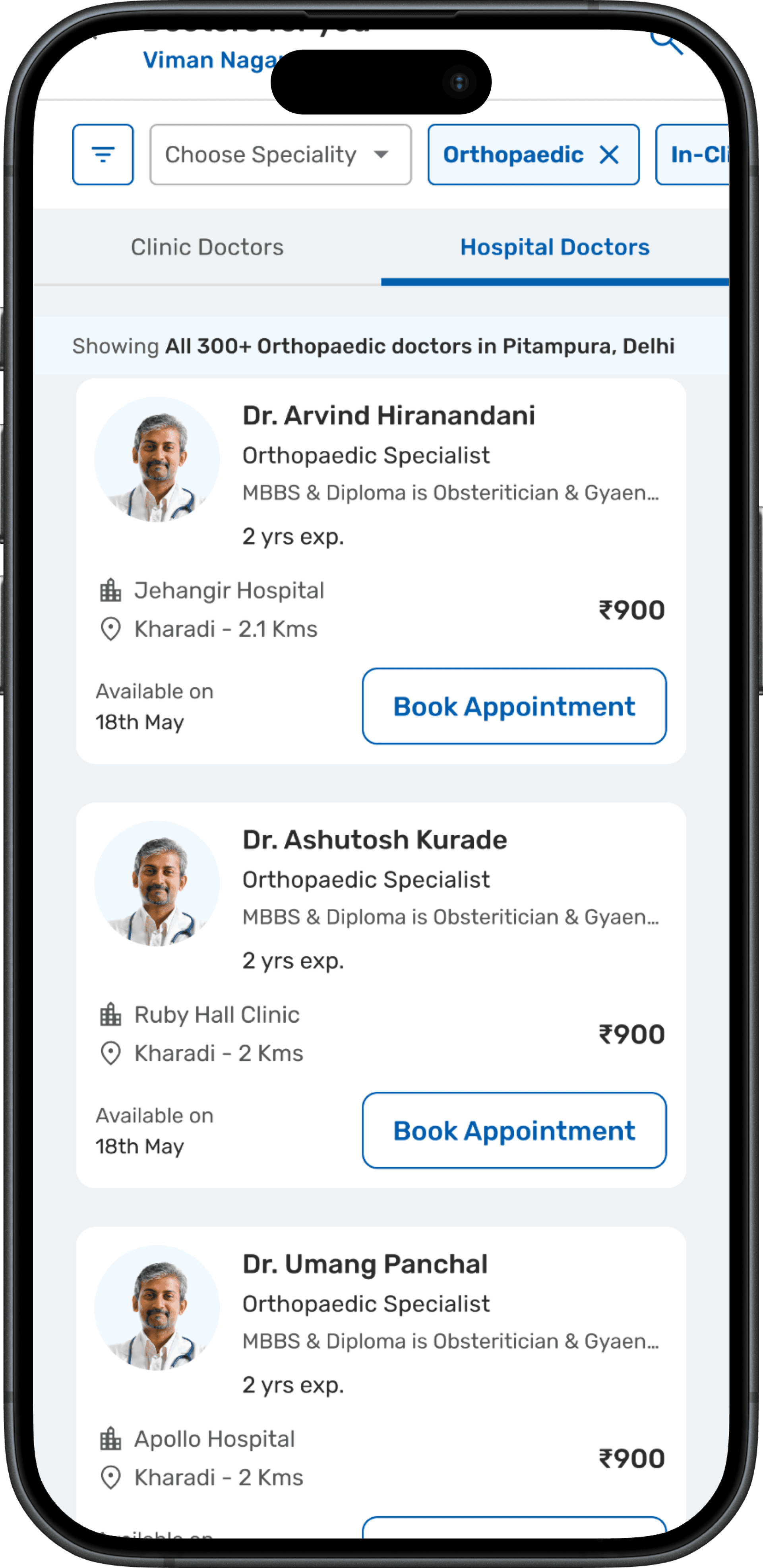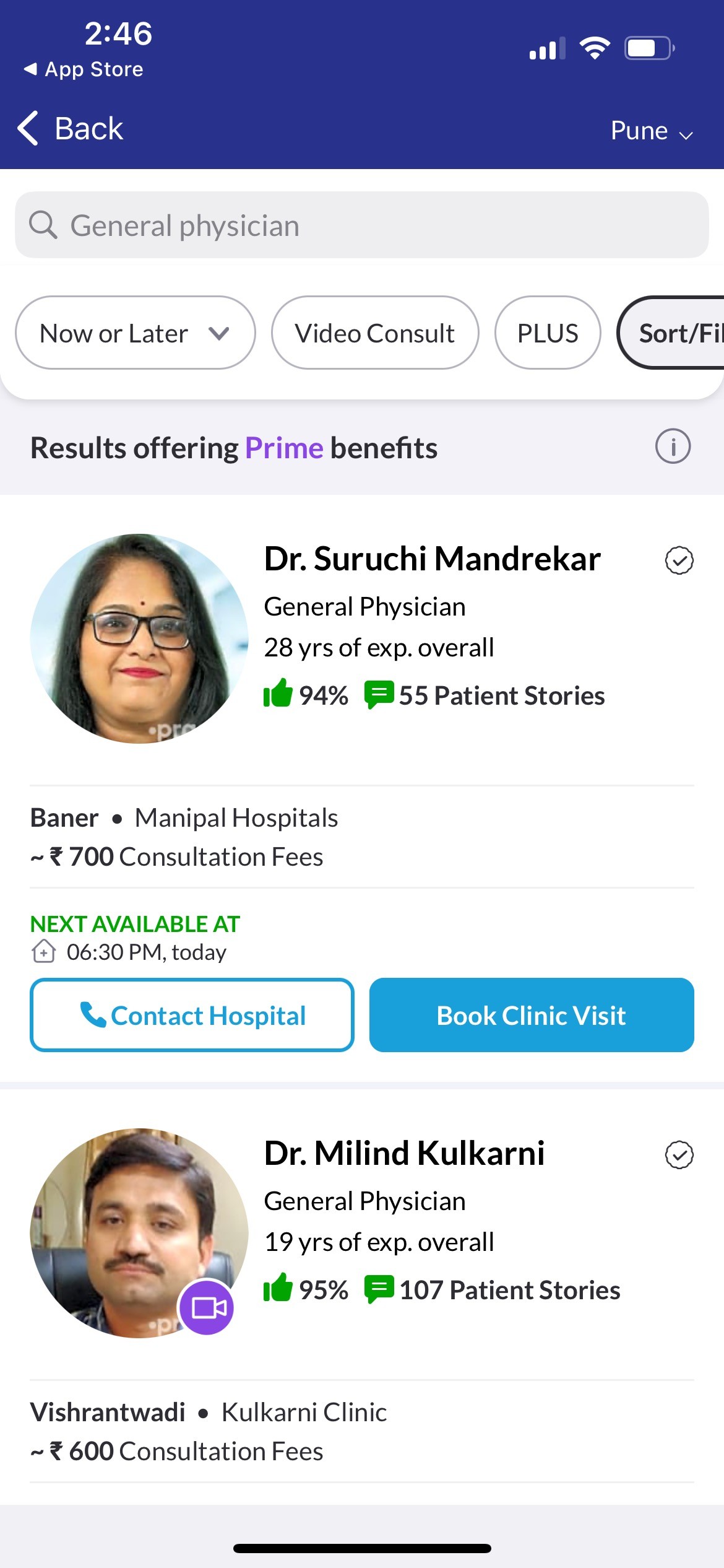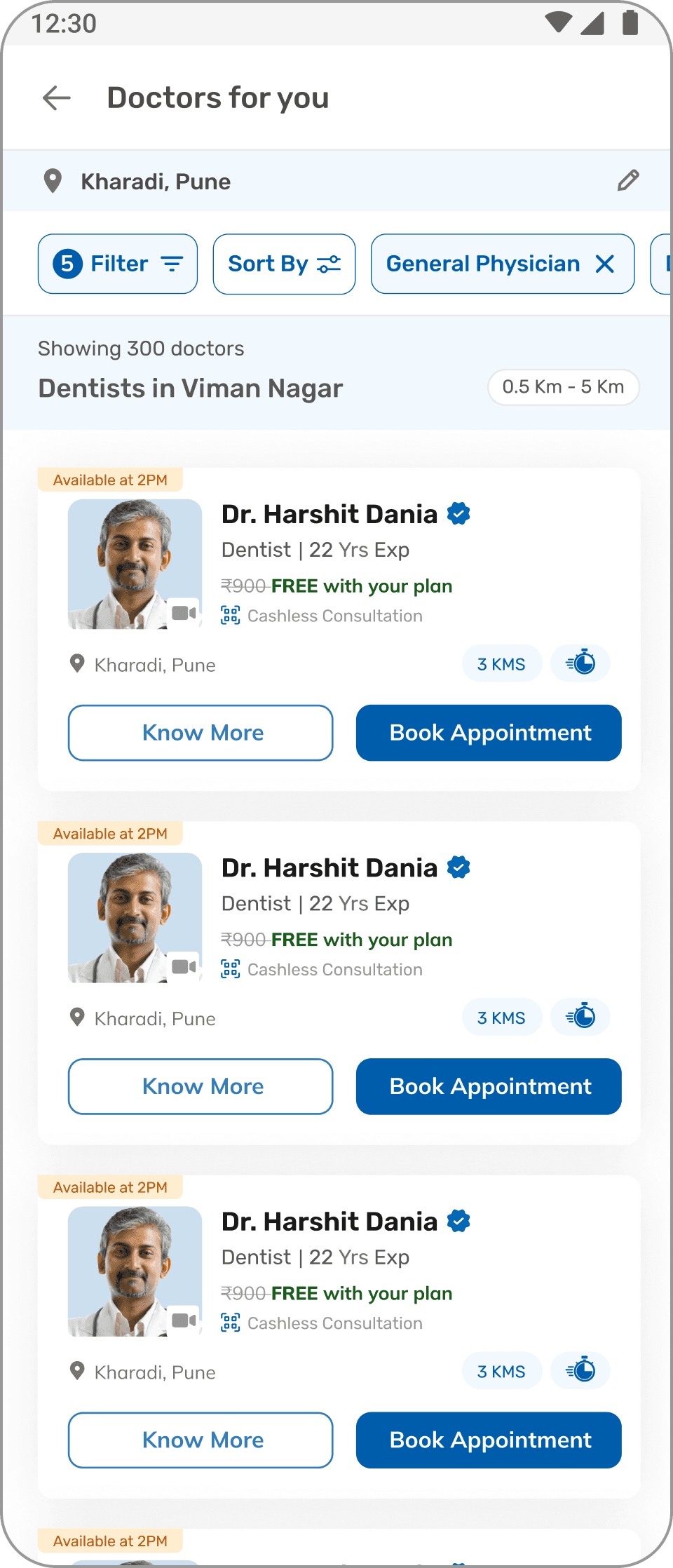 The doctor details are there in a card format which makes the decision factor for a patient for consultation.