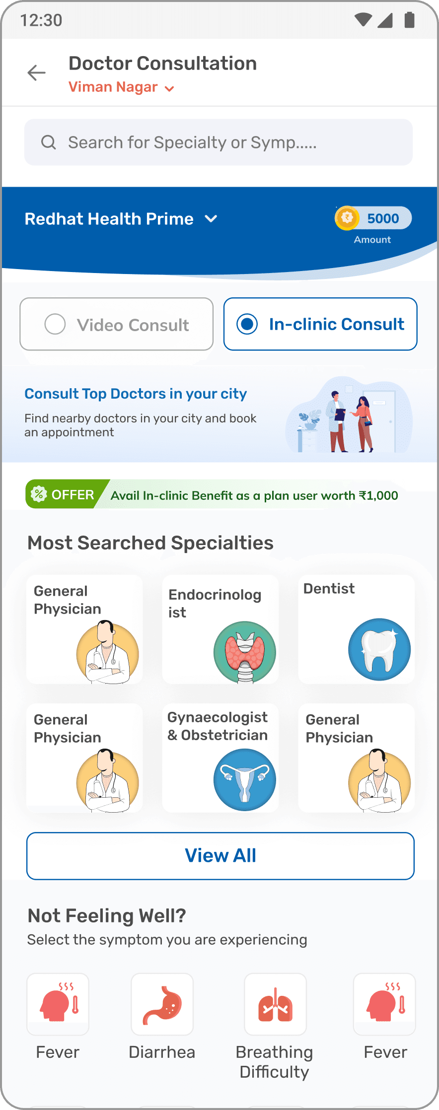 Lands on doctor consultation landing screen