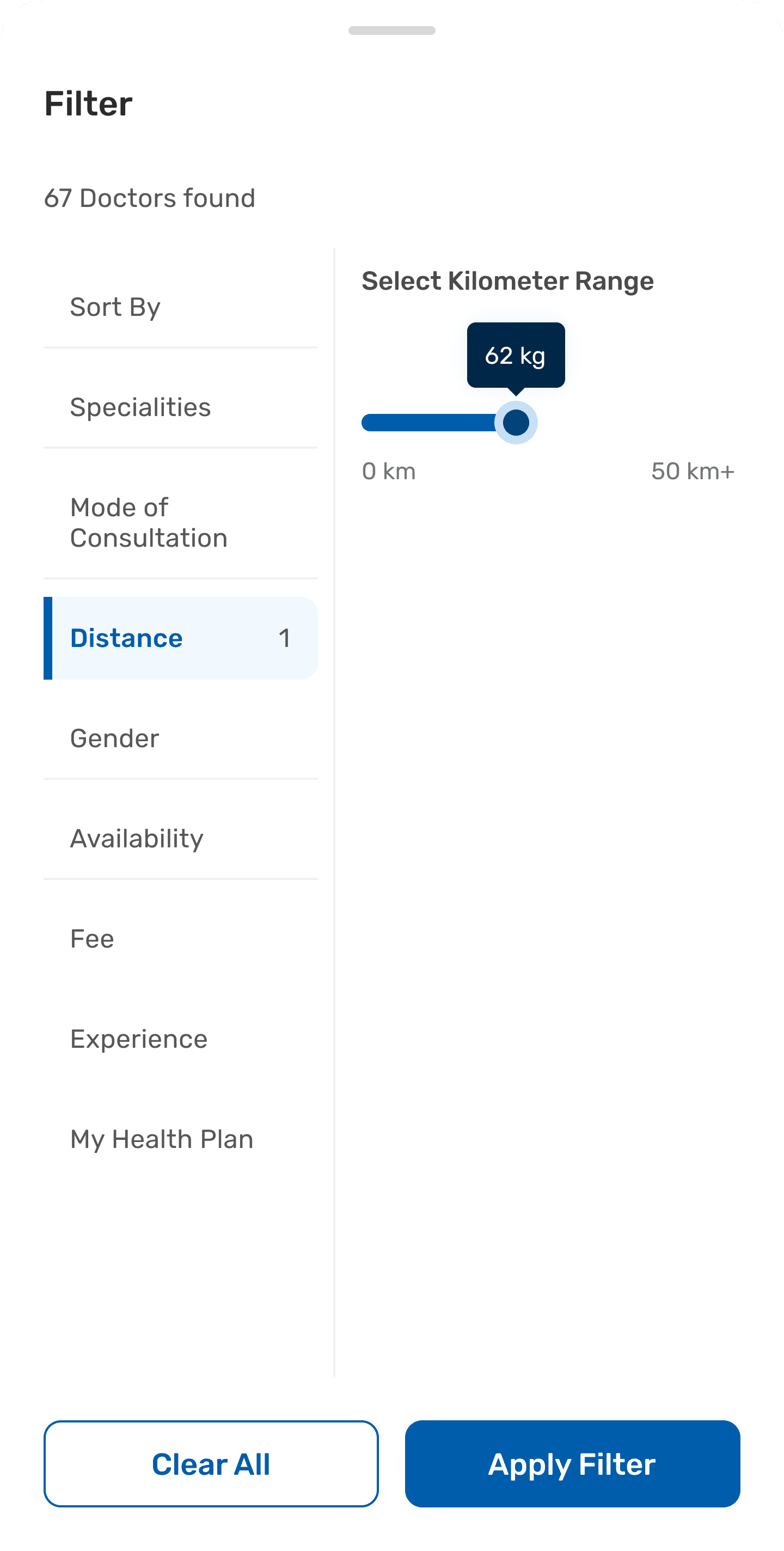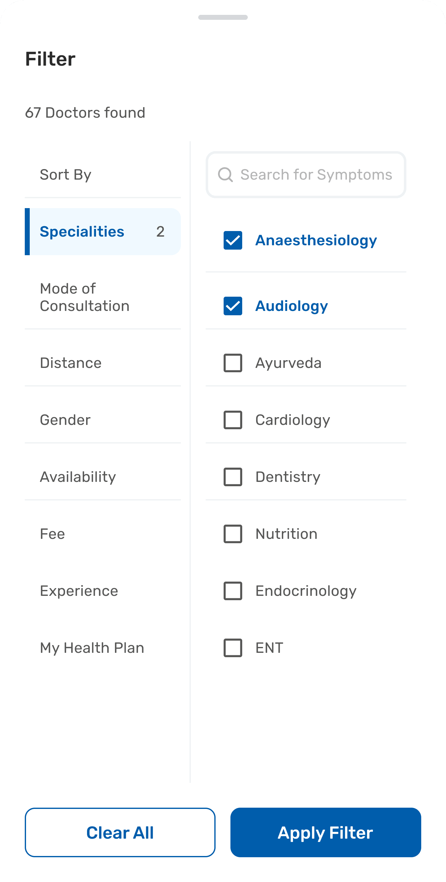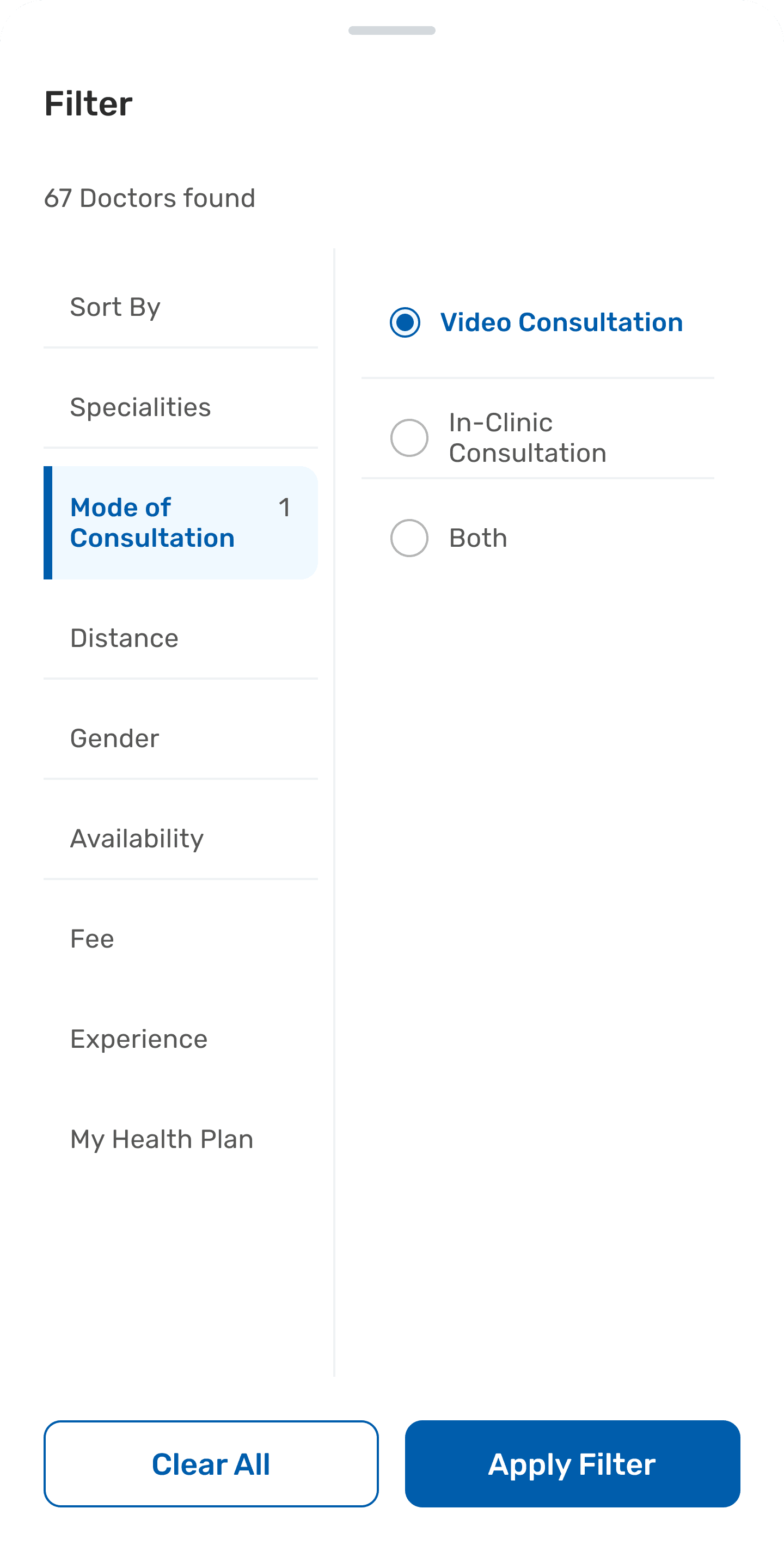 Doctor Consultation Filters- Details In bottom sheet drawer