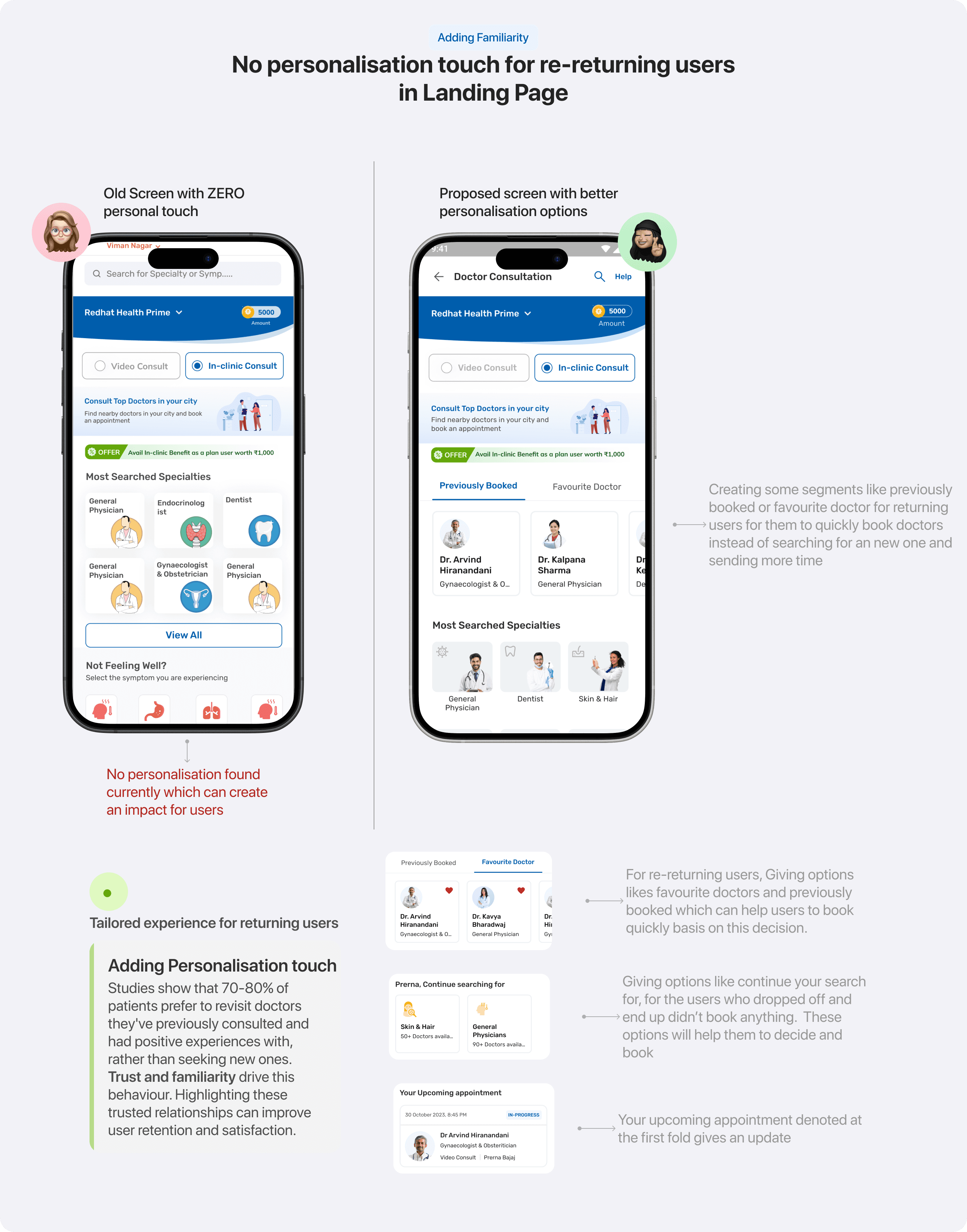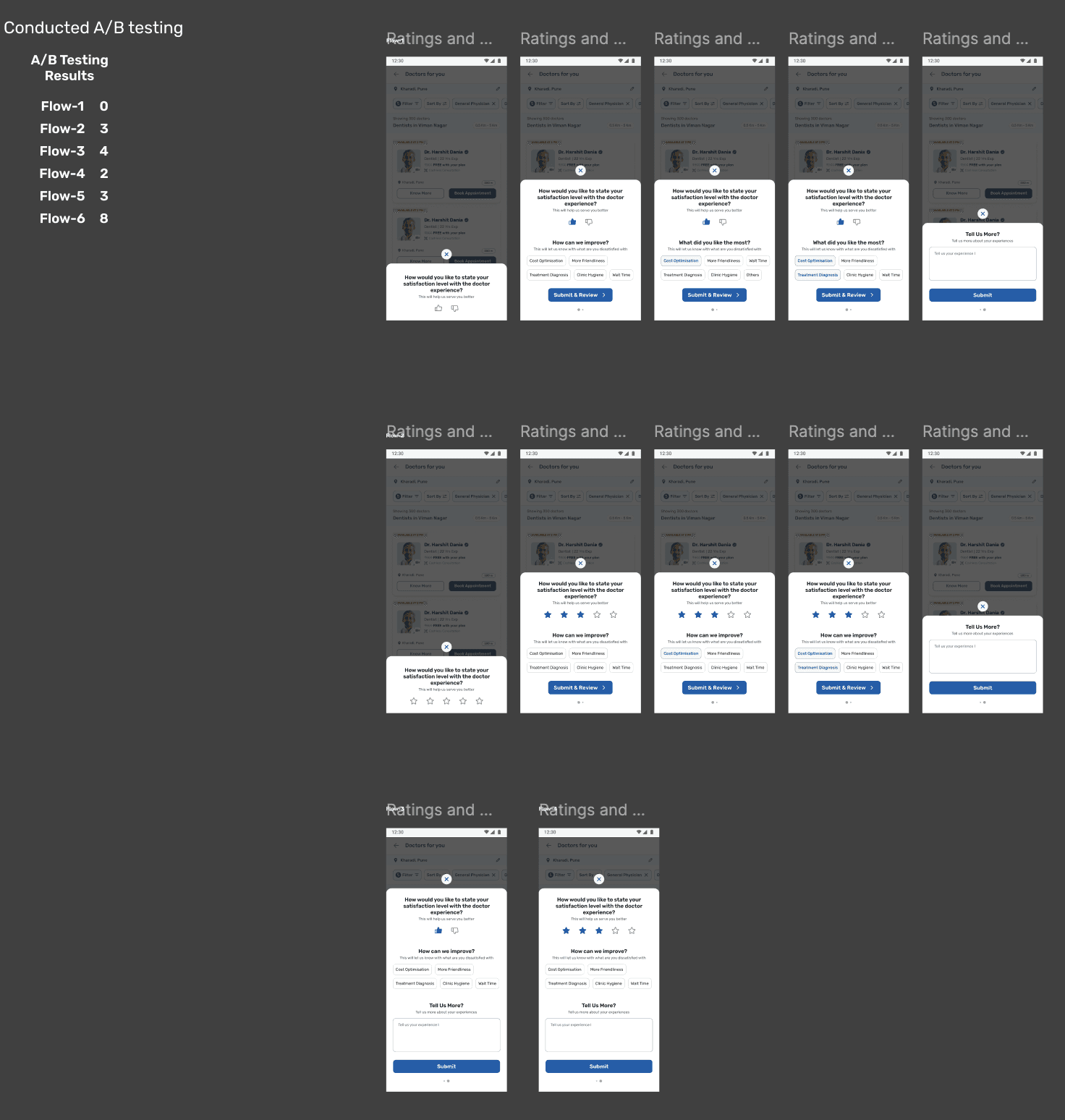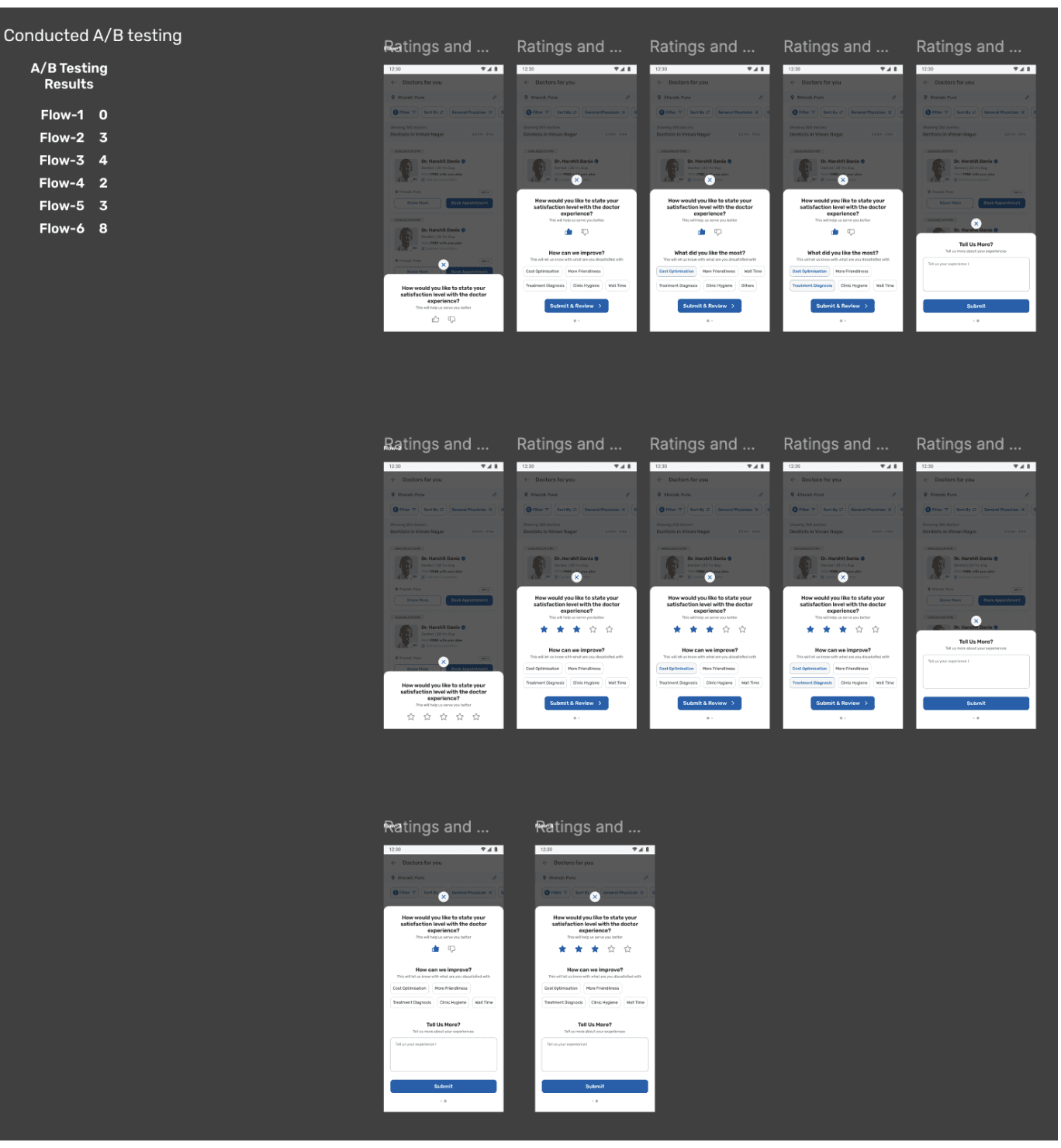 We closely examined the screens in the doctor appointment journey to identify points of friction and areas where users struggled to make decisions.