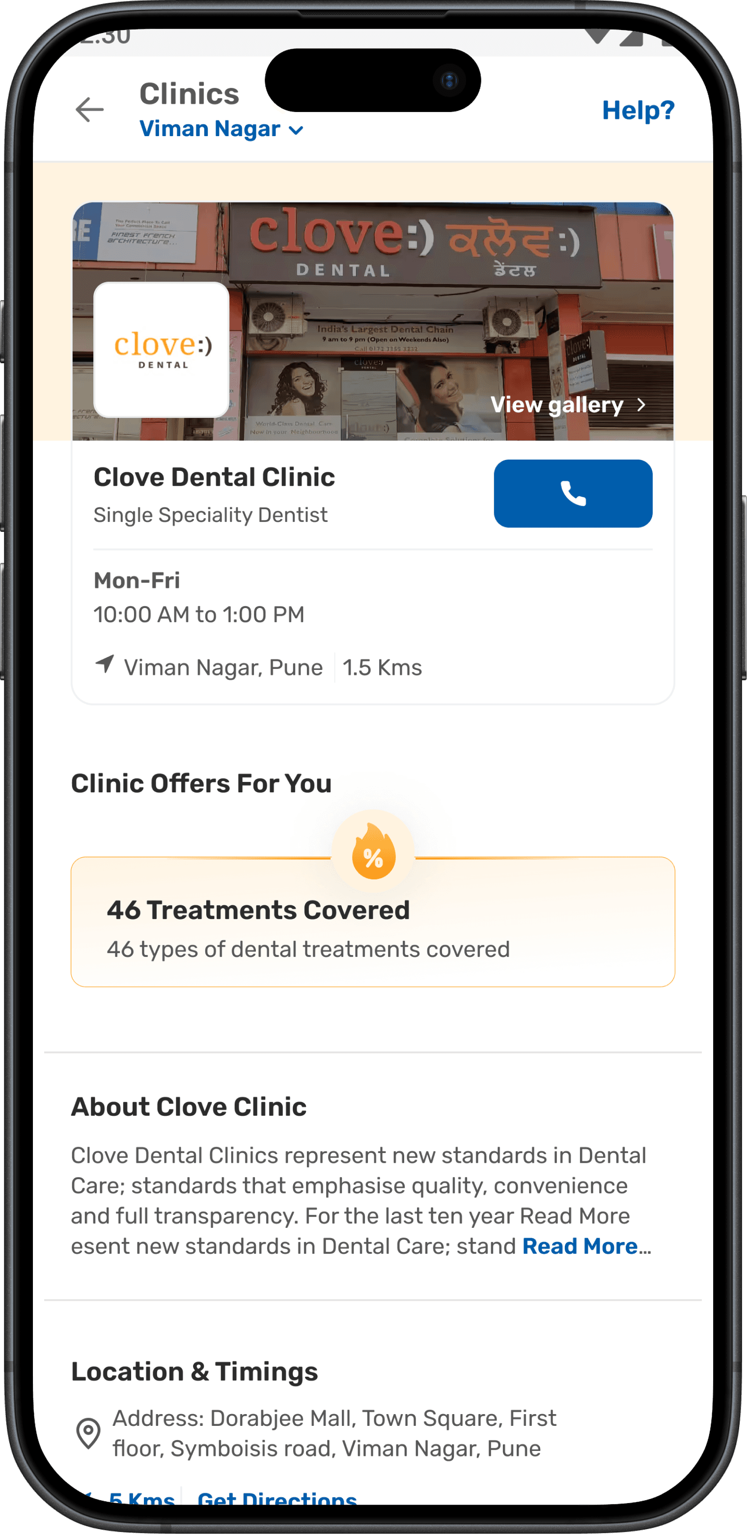 Clinic Details screen
