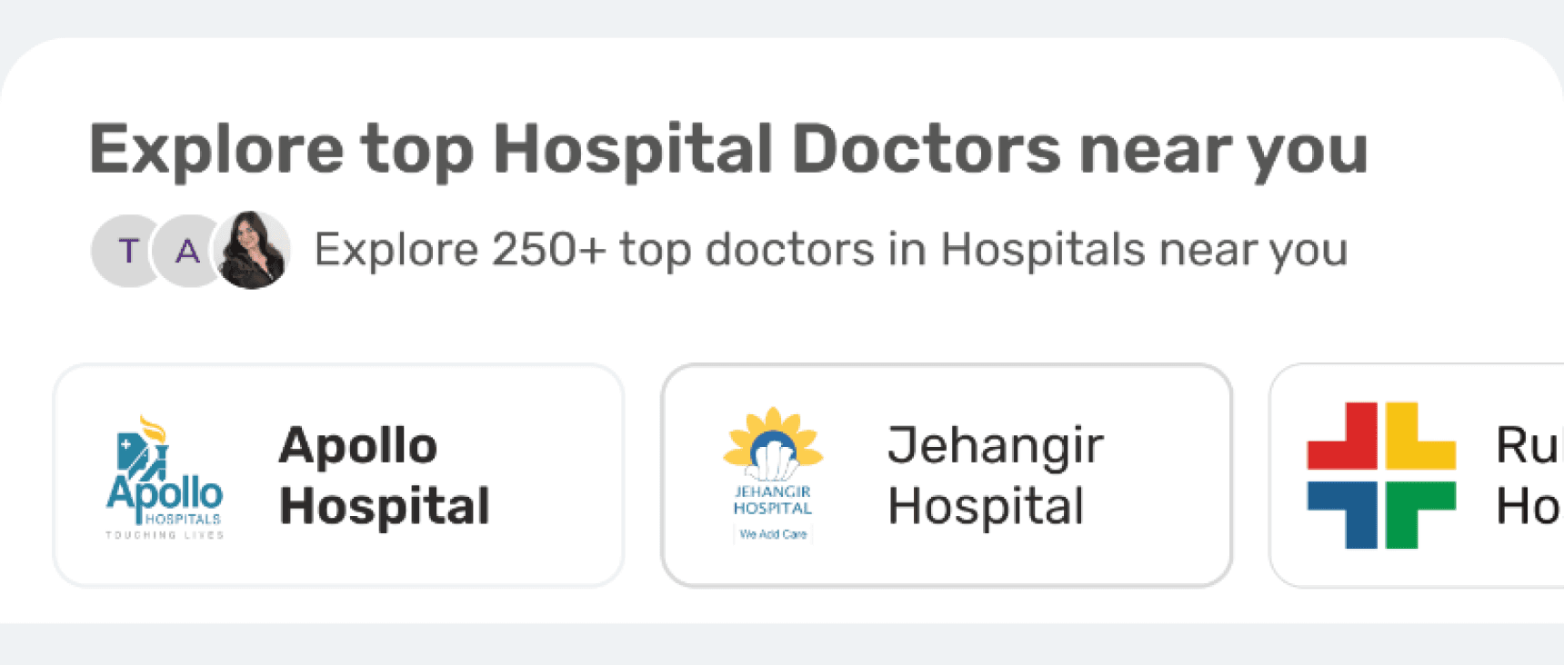 A Explore Hospital section for the users to explore other hospitals if they decide to consult this type of doctors.