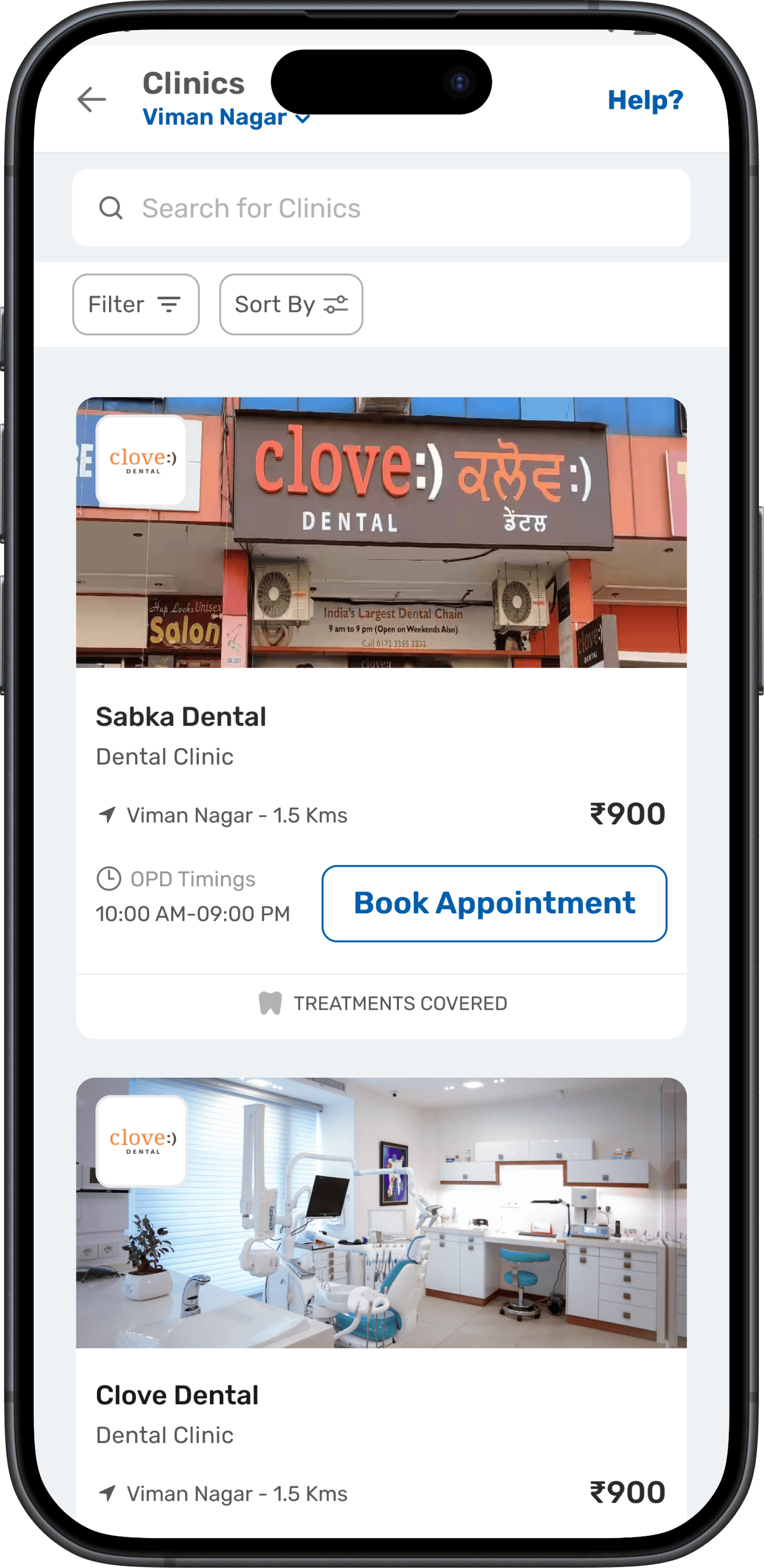 Clinic Listing screen
