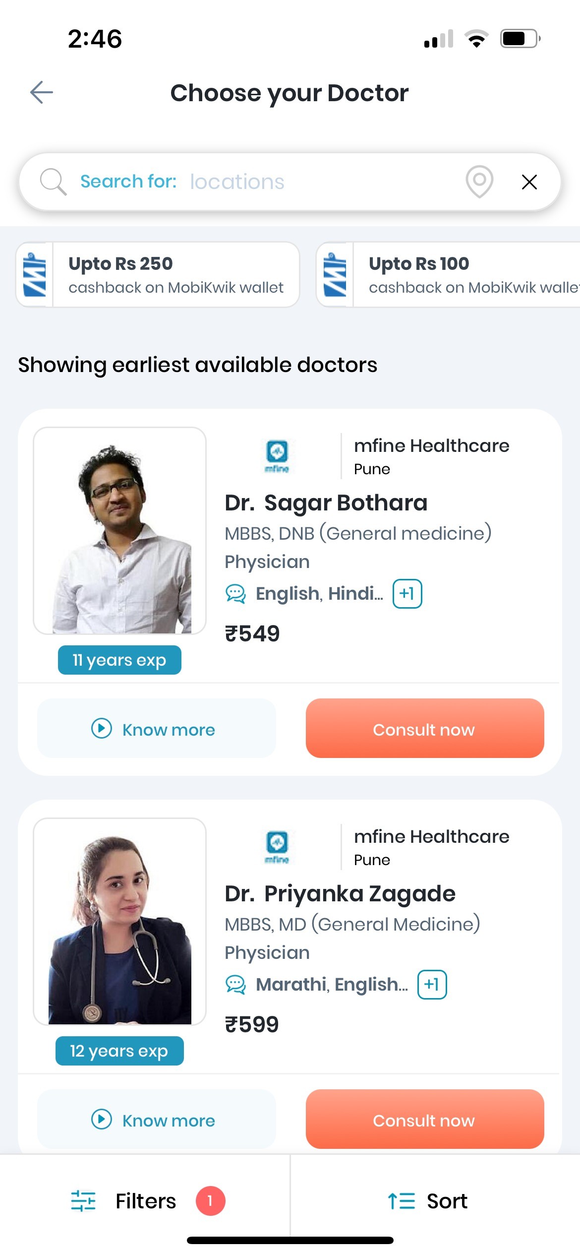 I only need the doctors near to my home so that i can consult them easily, while it doesn’t allow me to show the nearest first