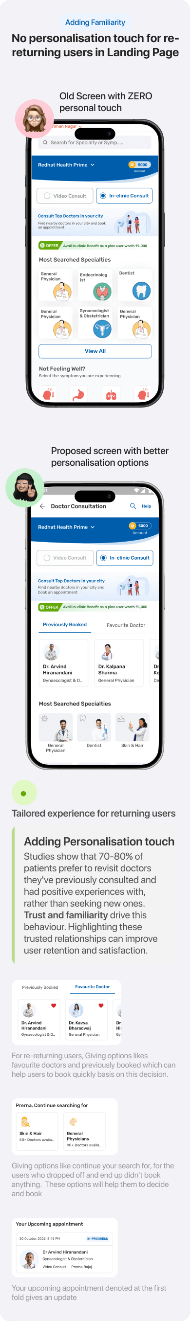 The success metrics after these improvements went live showed a significant impact on the business. I realized how even a few simple enhancements and major innovations can drive change. Some stories are straightforward, like ensuring a smooth journey for patients booking a doctor. As simple as it sounds, I discovered that a happy user equals a happy business.