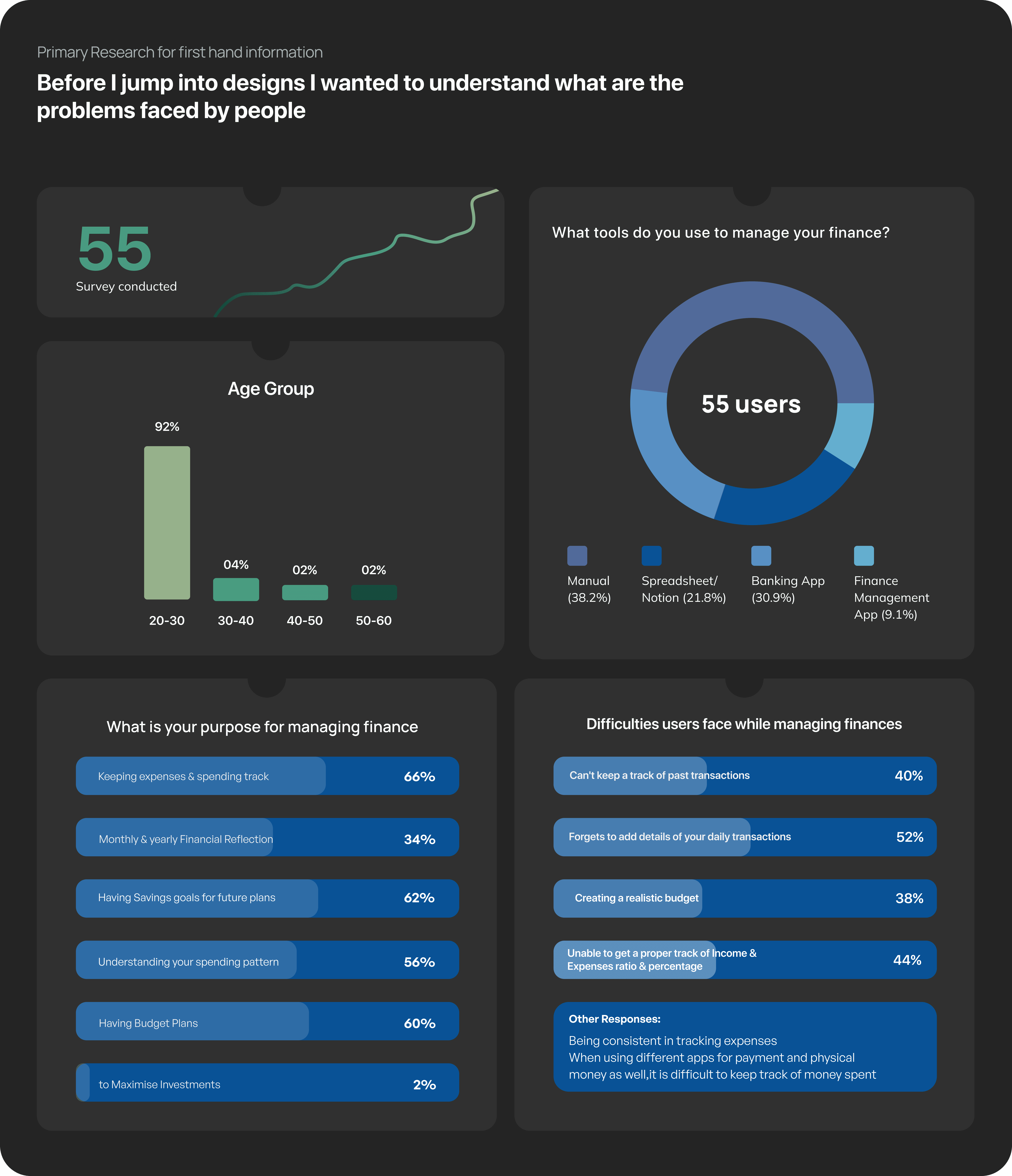 Interviewed 8 Users to understand their behaviour and frustrations while managing their finance.
